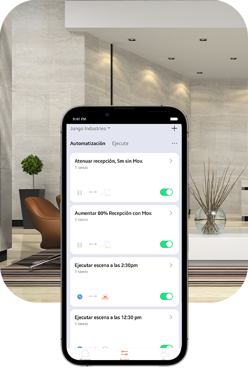 Con el ecosistema de productos Jungo podrás tener el control total de tu espacio desde la palma de tu mano a travez de Jungo Connect.